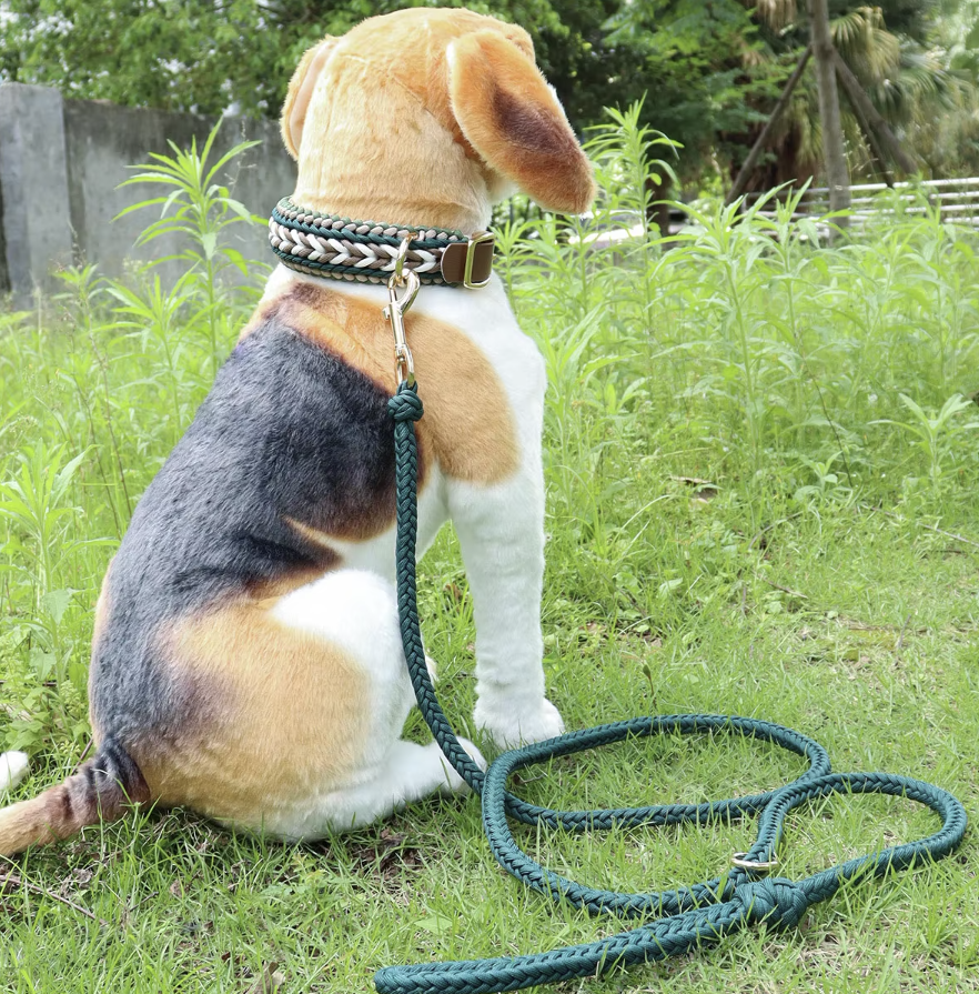 The Maverick Set is designed for everyday walks- long morning strides, coastal paths, and city streets alike. The 162 cm braided rope leash offers generous reach while maintaining steady control, and the wide woven collar provides comfort and structure for medium to large dogs.